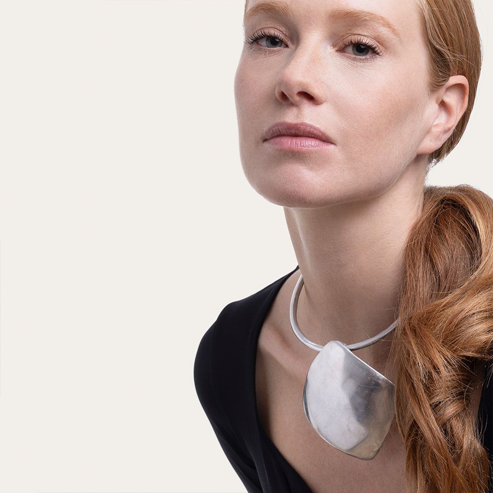 I bijoux sono fatti a mano, creati individualmente da sapienti artigiani. L’alluminio abbraccia la sua seconda vita nei panni di forme sinuose e uniche, passando da una forma all’altra. E’ resistente all’acqua ed è versatile per ogni tipo di pelle.