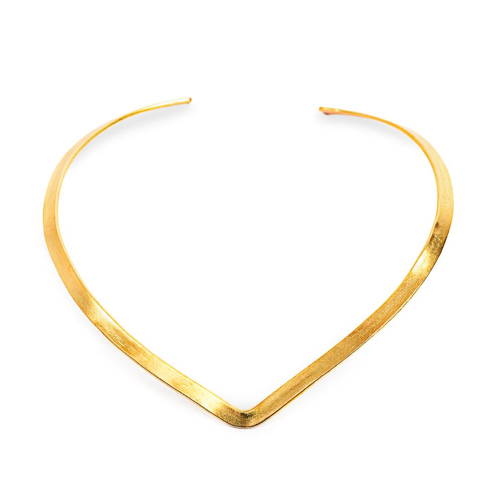 Collana fine rigida a forma di V. Lavorazione artigianale.
