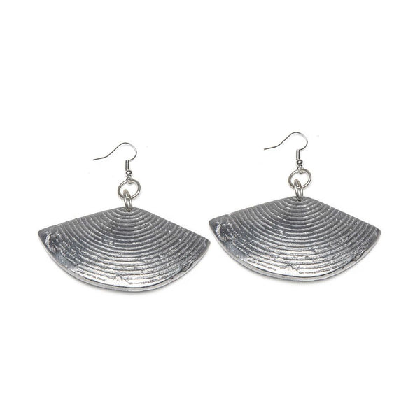 Orecchini semi luna strisce grezze. Altezza 3,5 cm. Realizzato a mano in alluminio 100% riciclato.